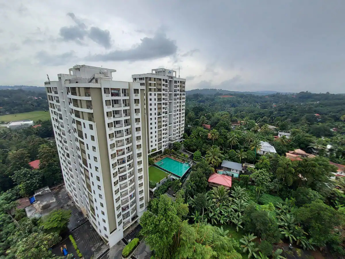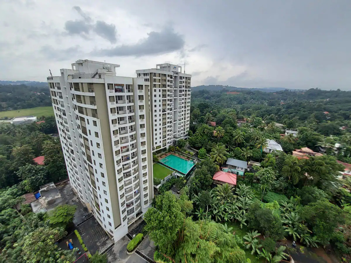 Fully furnished 2 bedroom Luxurious flat in Kottayam, Manganam and Apartment has 3 towers, with 15 floors each and 181 units on offer. Spread over an area of 2.48 acres, Skyline Green Turf is one of the spacious housing societies in the Kottayam region with Gated community.